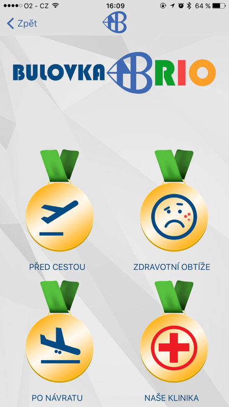 Nemocnice Na Bulovce vydala novou mobilní aplikaci Bezpečné Rio. Je to soubor doporučení a informací od odborníků z infekční kliniky Nemocnice na Bulovce, které se mohou hodit každému, kdo se chystá do Brazílie na XXXI. letní olympijské či paralympijské hry v Rio de Janeiro. S jejich znalostí a dodržováním lze významně snížit riziko zdravotních obtíží během cesty či po návratu.